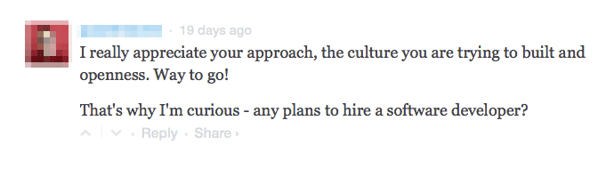 We’ve gotten huge opportunities for partnerships with amazing companies like HipChat.
