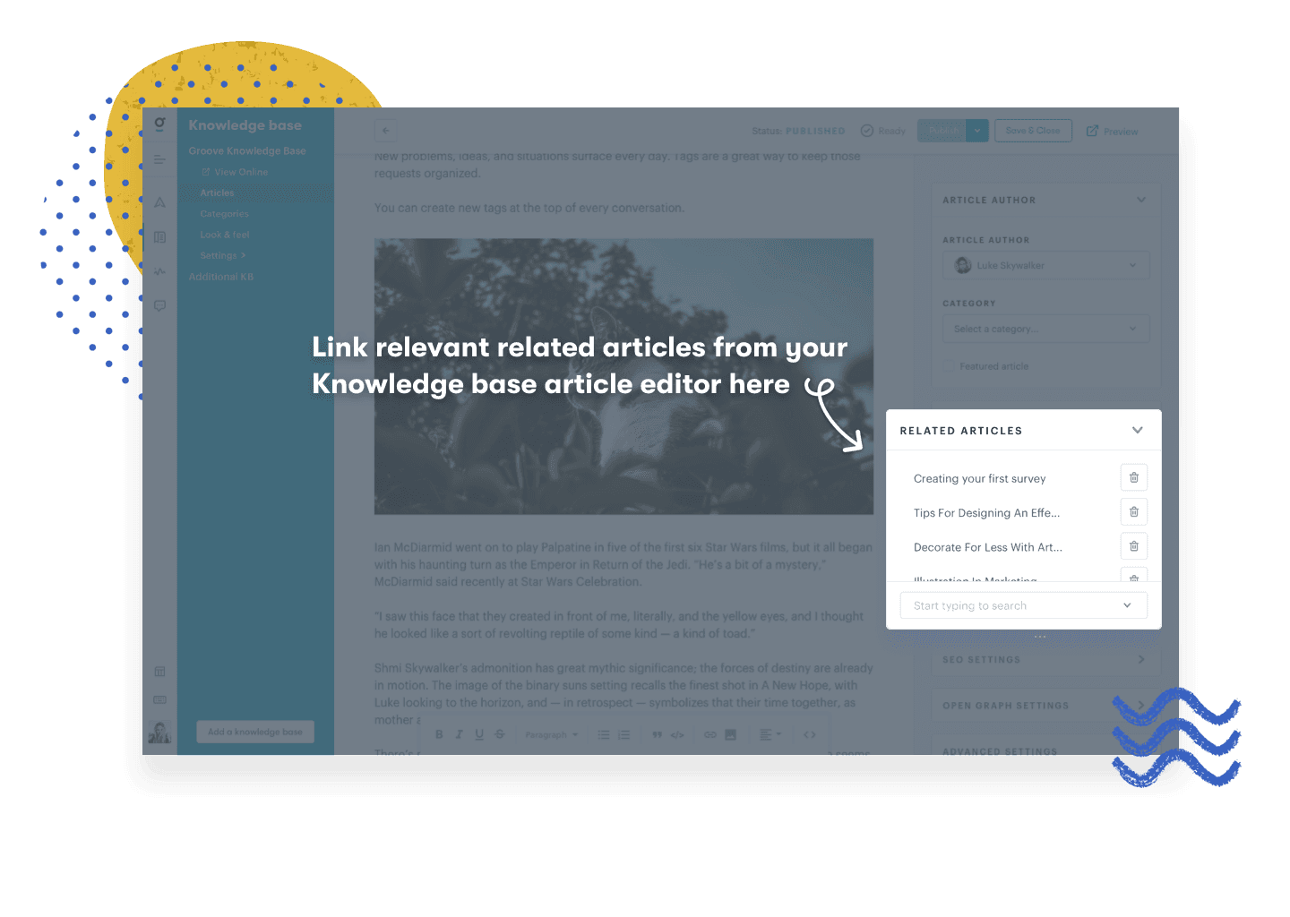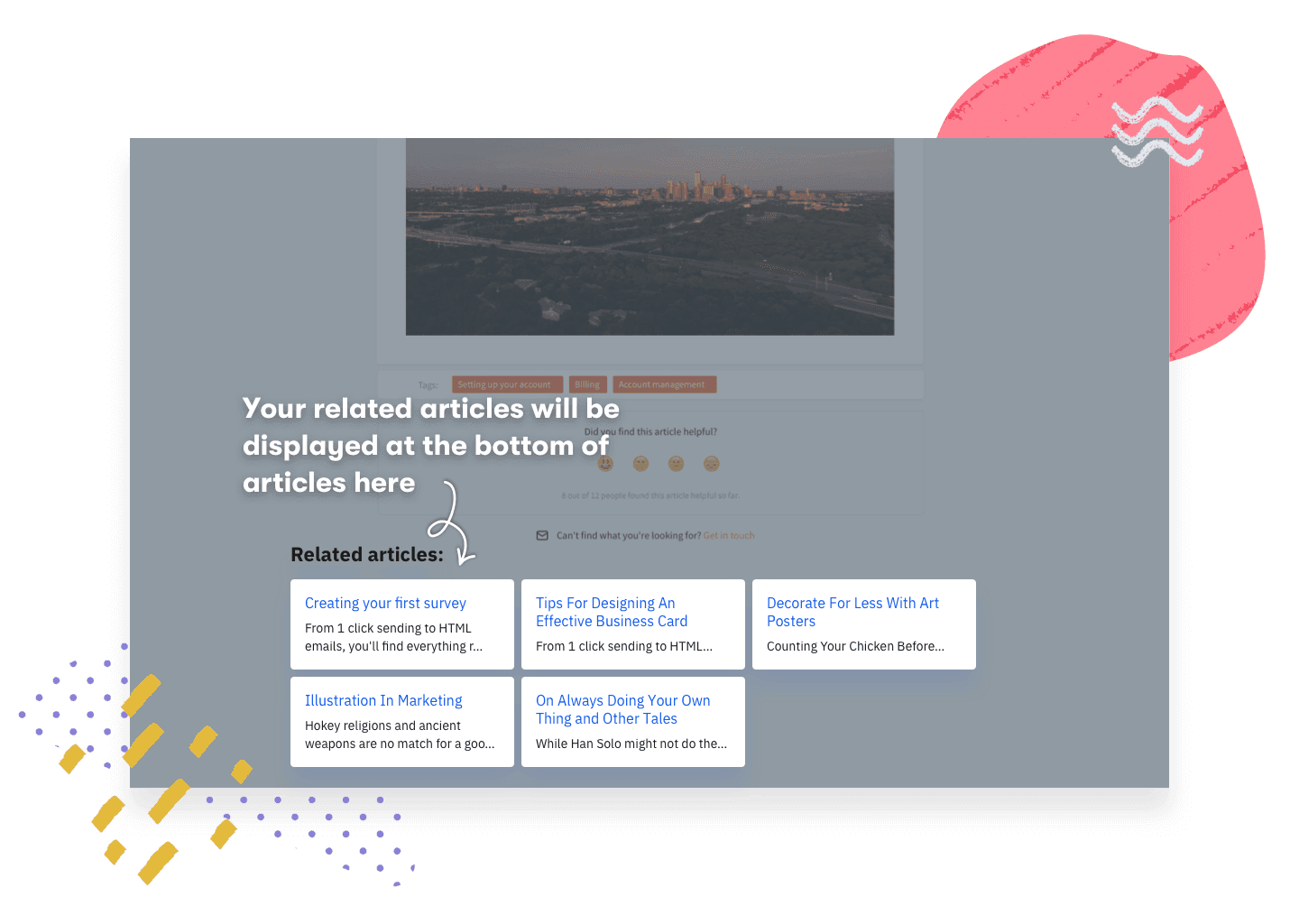At the end of each article, you can now place a list of related articles to help your customers find what they need easily, minimizing incoming requests to you and your support team.