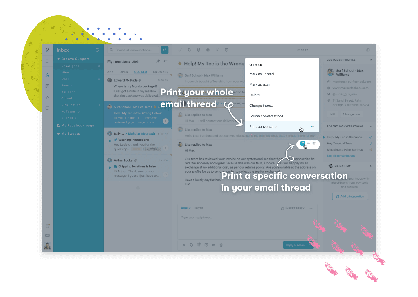 With this optimized print view, you get all the necessary details and links such as attachment names, tags added, and all email actions.