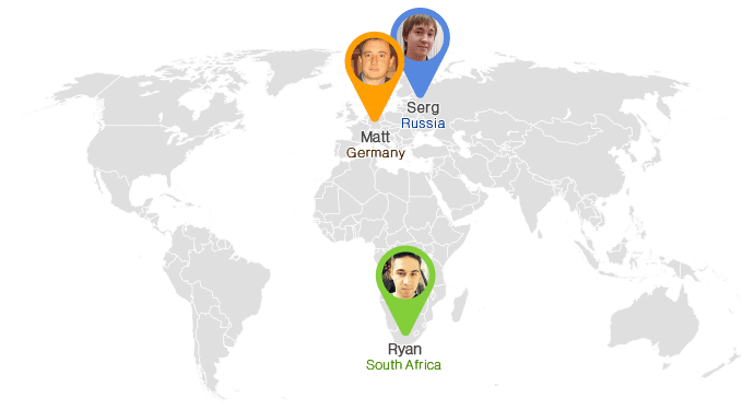 In the last six months, we’ve hired two new developers (Matt, who lives in Berlin, and Ryan from Cape Town, South Africa), and Serg, our St. Petersburg-based front-end developer who had been with us for several months, joined us full-time.