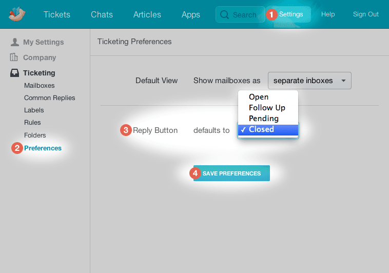 Admins can find where to make this change in the Settings Menu, in the left side bar of Mailboxes under Preferences.