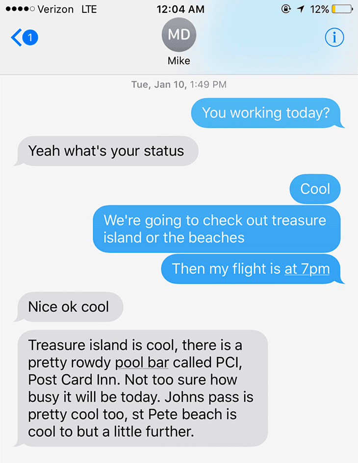 To say the least, I wasn’t planning on “working” that next day. I even texted my friend to see if he wanted to go to the beach with us.