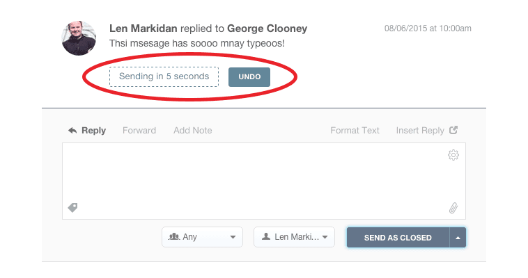 Now, any responses you send will be delayed for 5 seconds (you can toggle the delay with the drop-down menu in your settings), giving you the chance to undo sending if you realize you made a mistake.
