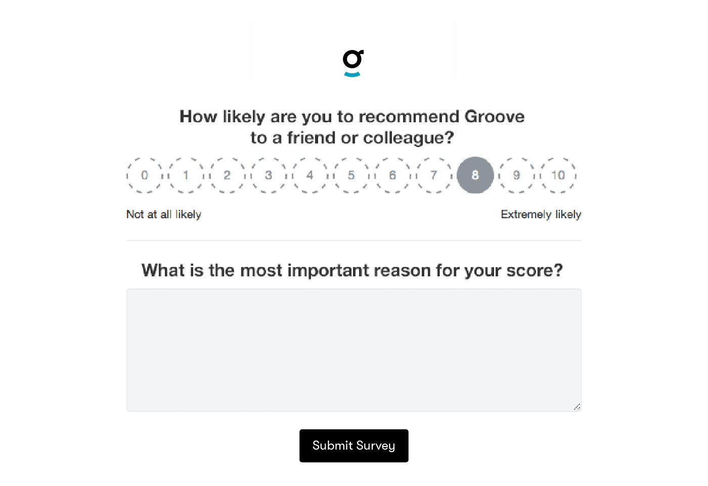 Results from the first question tell us how many of our customers are promoters (those who respond with a 9 or 10), passives (7 or 8) and detractors (0 to 6) of Groove. Results from the second question tell us why.
