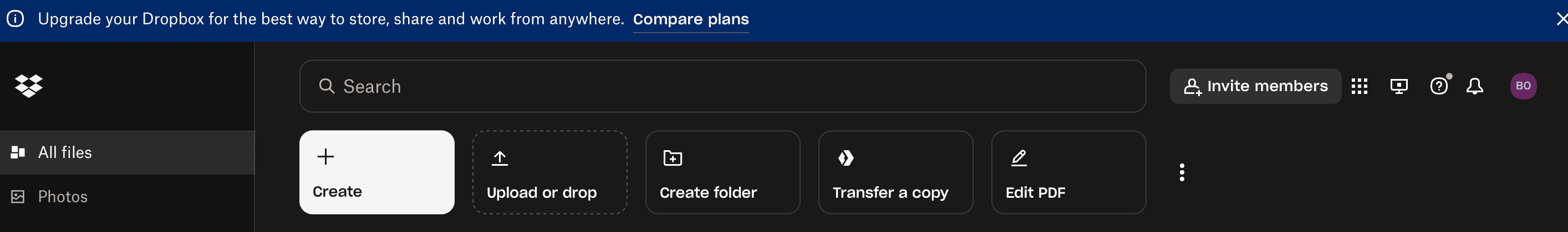 When you approach the end of your available storage space in Dropbox, you’re prompted to upgrade each time you check the amount of available space in the app. And when your Dropbox is full, you can upgrade right in the app: