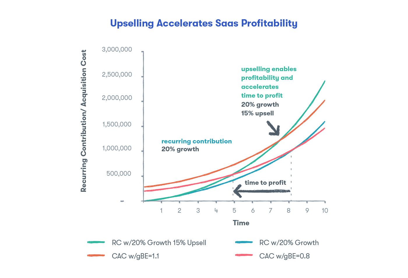 As entrepreneur Joel York explains, as long as the cost of upselling is low (it usually is), “SaaS companies can accelerate time to profit by upselling and upgrading current customers,”