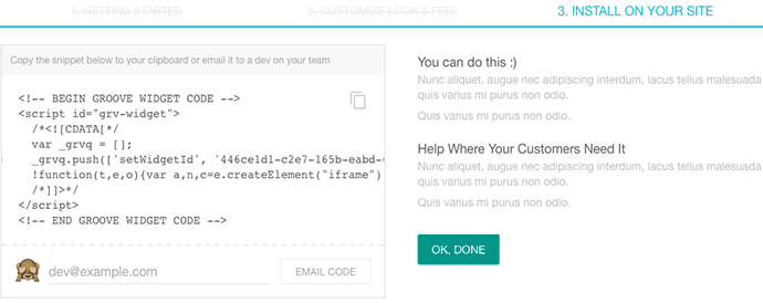 When you’re finished setting everything up, you’ll get a new code snippet to install the updated widget on your site.