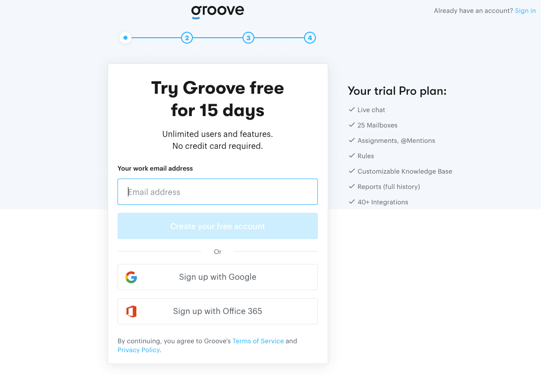 Groove currently offers a 7-day free trial on every plan. Set-up time takes five minutes and there’s no credit card required.